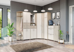 Из модулей, вошедших в комплектацию модульной прихожей «Граф» МФ Велес, можно собрать гарнитур любого типа – линейный, угловой, компактный или большой для входной группы дома. В любом случае комплект будет единым решением в конструктивном и стилистическом плане.